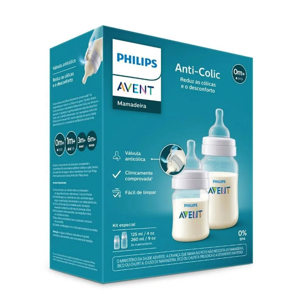 Esse kit especial da Philips Avent traz duas mamadeiras anti-cólicas nos tamanhos ideais para acompanhar o crescimento do seu bebê: uma de 125ml para os primeiros meses e outra de 260ml para quando ele estiver maior. Desenvolvidas para tornar a alimentação do seu pequeno mais tranquila e confortável, essas mamadeiras são a escolha perfeita para mamães e papais que buscam praticidade com qualidade.