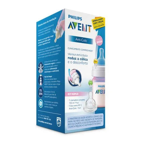 A Mamadeira Anti-colic Philips Avent, conta com sistema anticólicas com eficácia comprovada na redução de cólicas, a agitação do bebê é reduzida, especialmente no período noturno. A Mamadeira Anti-colic, possui bico exclusivo que promove uma alimentação saudável e ativa, que funciona de acordo com o ritmo natural de mamar do seu bebê, o bico Simétrico permite o desenvolvimento correto da dentição, pálato e gengivas. Além disso minimiza significativamente o incômodo, principalmente à noite. Na medida em que seu pequeno mama, o exclusivo diafragma do bico Avent é flexionado, permitindo a entrada de ar na mamadeira e não na barriga do bebê. Fácil de utilizar, limpar e montar, gargalo largo e poucas peças para montagem, limpeza fáceis e simples. Compatível com acessório Philips Avent AirFree™ não incluso.