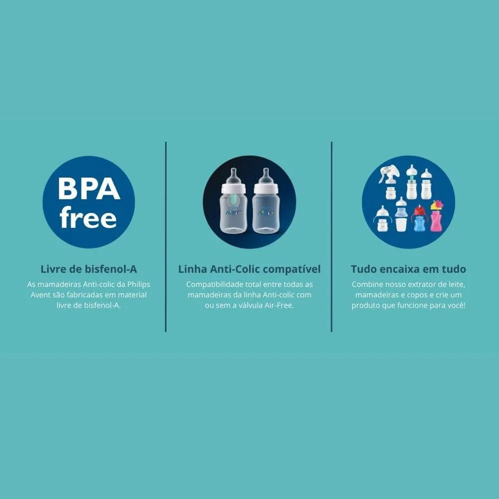 Informações adicionais A Mamadeira Avent Anti-colic possui gargalo largo que facilita o enchimento e a limpeza. Com apenas algumas peças, a montagem é simples e rápida, perfeita para o dia a dia agitado dos pais. O formato ergonômico permite que o bebê segure a mamadeira com mais firmeza e conforto. A Philips Avent é uma marca reconhecida mundialmente por desenvolver produtos que promovem o bem-estar dos bebês.